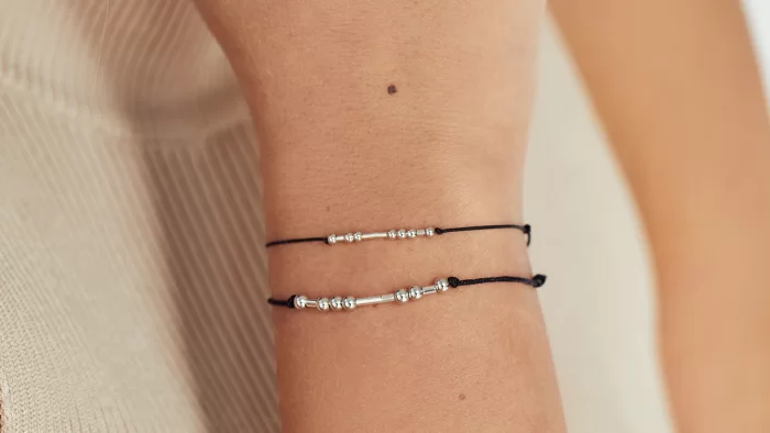 A Morse karkötőket szakadásmentes fonallal vagy láncos verzióban is választhatod. Az ékszerek mindegyike magas minőségű anyagokból készül, így nemcsak stílusosak, hanem időtállóak is. Ezüst gyöngyökkel, 925 finomságú sterling ezüstből vagy gravírozott medálként akár 14 karátos sárga-, fehér-, vagy vörös-aranyból is kérheted. Karkötőként szorosan a testhez simulva viselheted, így mindig veled marad a benne rejlő üzenet.