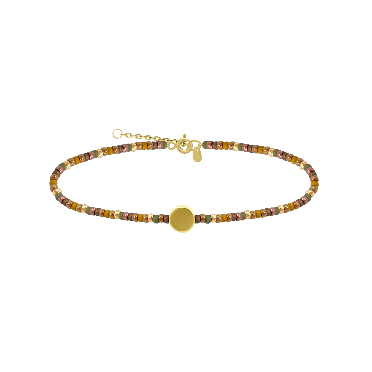 Fedezd fel a Symbol Design Glow karkötő varázsát, ahol a barnás-arany tónusú design gyöngyök harmonikus eleganciája találkozik a sárga arannyal bevont ezüst 925 medál ragyogásával! A design gyöngyök természetes, földszínű árnyalatai a melegség, az ünnepi fények és az időtlen stílus megtestesítői. A finoman csillogó kör alakú medál letisztult formája modern kontrasztot teremt a gyöngyök természetes textúrájával, így a karkötő minden alkalomhoz illik — legyen szó ünnepi megjelenésről, elegáns vacsoráról vagy akár hétköznapi stílusról. A lánchosszabbítónak köszönhetően a méret könnyedén állítható, így tökéletesen illeszkedik minden csuklóra. Nem csupán egy karkötő — hanem egy finom, aranyló ragyogás, ami életre kelti a megjelenésed.