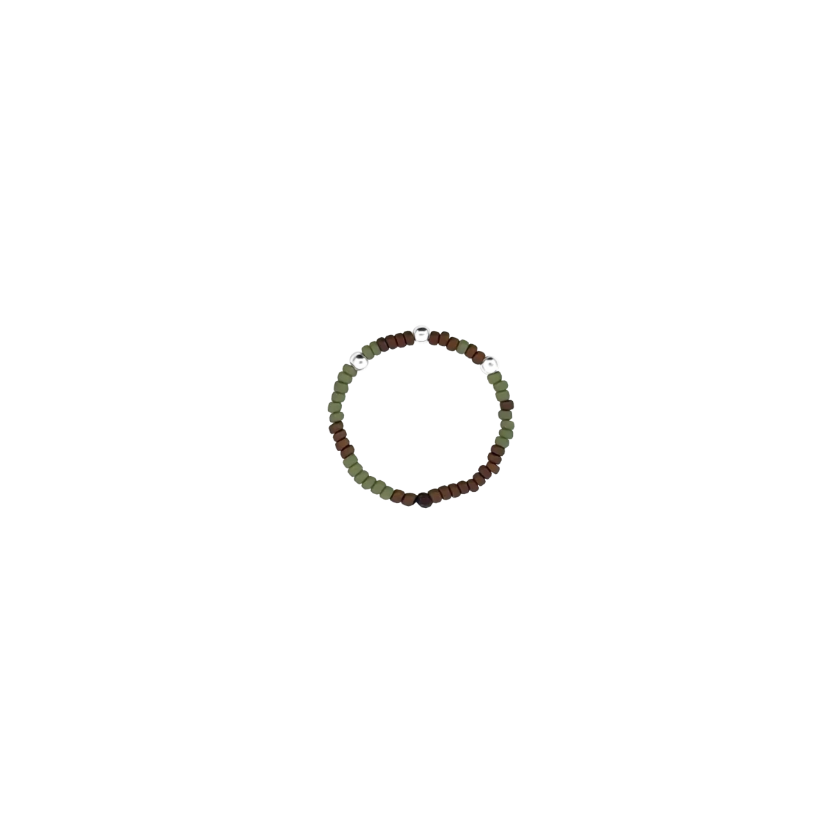 Fedezd fel az őszi színek varázsát ezzel a stílusos, mégis hétköznapokra is tökéletes gyűrűvel! A barna és zöld kásagyöngyök meleg tónusai a természet nyugalmát és az erdők aranyló árnyalatait idézik meg, míg a finoman csillogó ezüst golyó modern, fiatalos kontrasztot ad a megjelenésnek. Ez a gyűrű a letisztultság és a természetes elegancia tökéletes egyensúlyát képviseli – apró részlet, mégis magával ragadó kiegészítő minden napra.