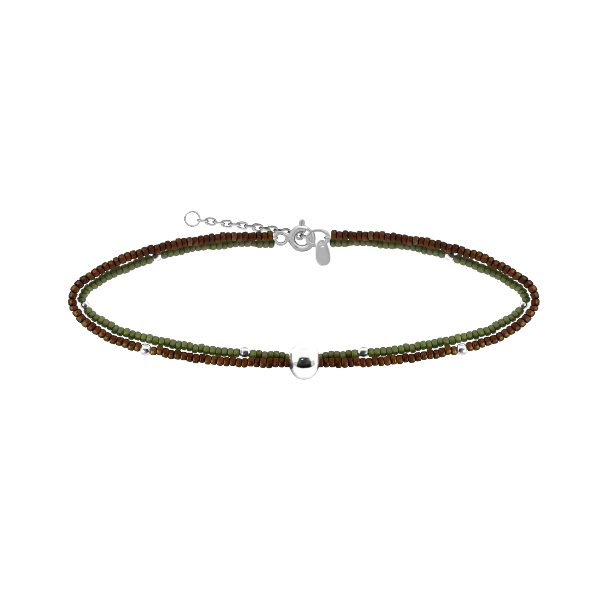 Barna És Zöld Design Gyöngy Ezüst 925 Karkötő