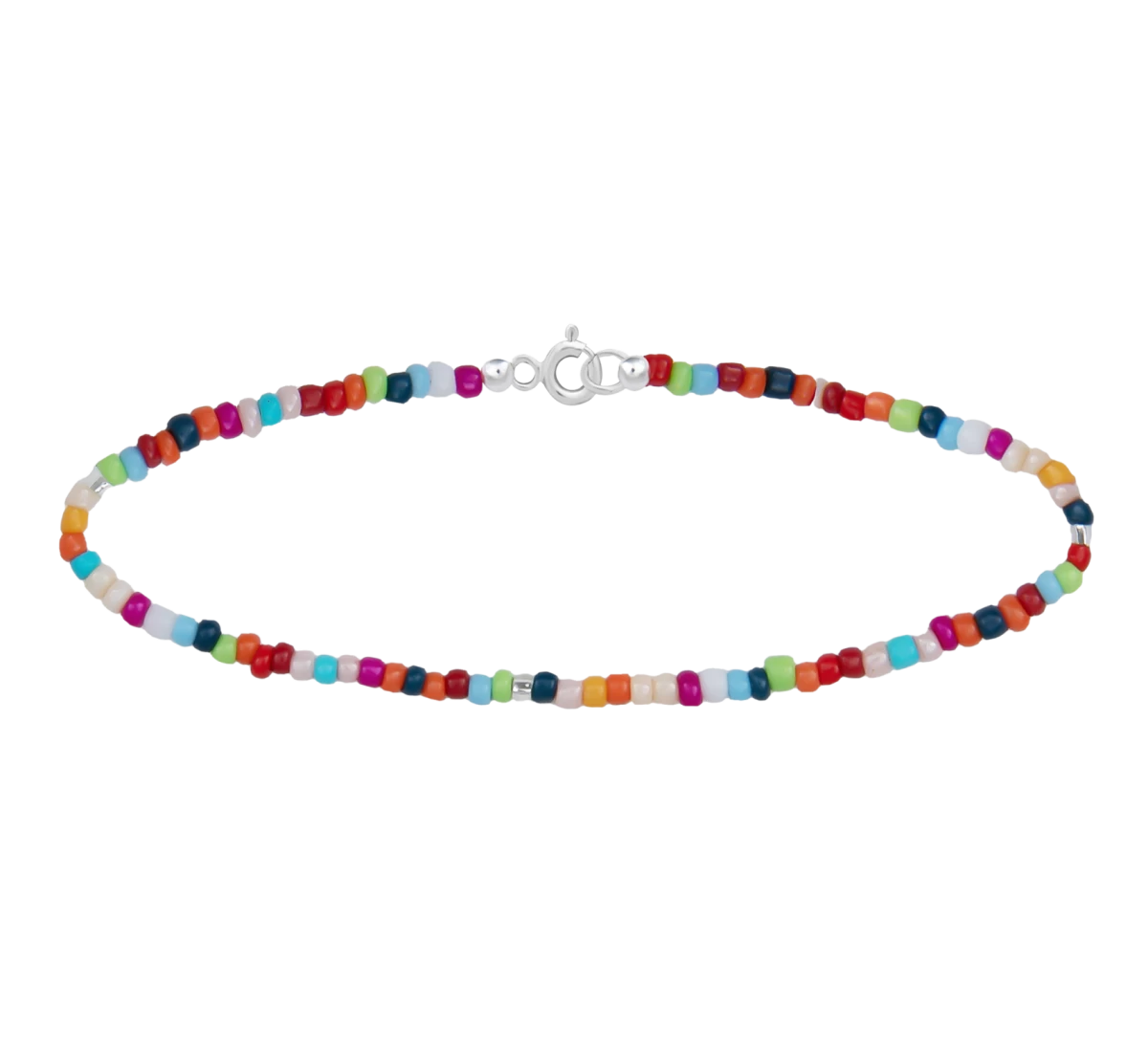 Design gyöngyökkel kirakott bokalánc. A nyári hangulatot idéző ékszer minden öltözéket feldob vidám stílusával. Az ékszer ezüst kapoccsal záródik, amely a színekkel tökéletes összhangot alkot. Dobd fel megjelenésed egy színes darabbal.