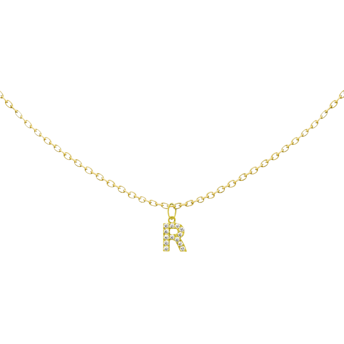 Egyedi Cirkónia Köves Betű Sárga Arany 14K Nyaklánc