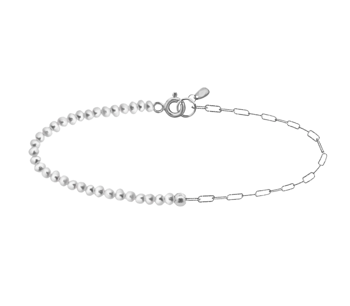 Gyöngy Vésett Hosszú Láncszem Ezüst 925 Karkötő