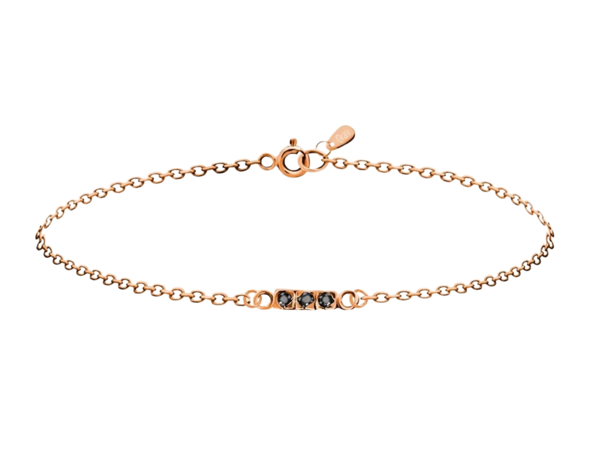 Ez a karkötő maga az időtlen elegancia, a három fekete cirkónia kő ragyogóvá varázsol minden alkalmat. A kézzel megmunkált finom karkötő elegáns kiegészítő, hiszen minden szettet feldob. Válassz mellé köves nyakláncainkból és alkosd meg egyedi stílusod. A kövek mérete 1 mm - 2.5 mm.