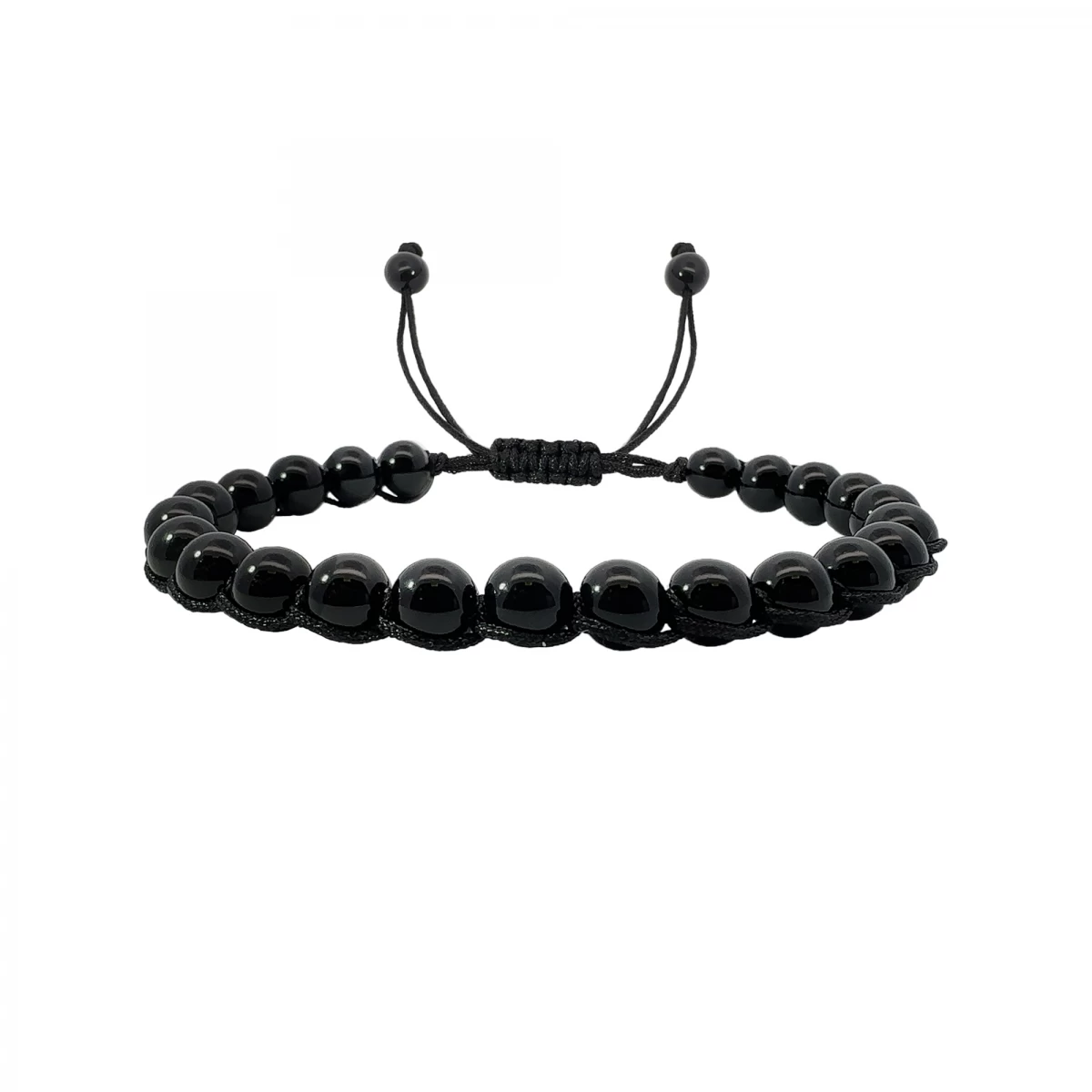 Makramé technikával megfűzött fekete ónix golyós karkötő. A golyók átmérője: 6 mm.