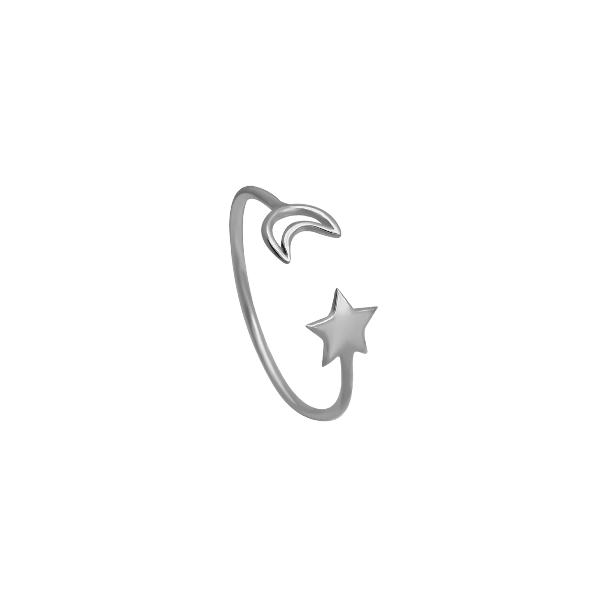 Csillagos égbolt ihlette káprázatos ékszer. A nyitott gyűrű egyik felén hold a másik felén pedig csillag motívum helyezkedik el. A különleges ékszer minden alkalomra kiváló választás, hiszen egyedi kivitelezésű kézzel készített darab.