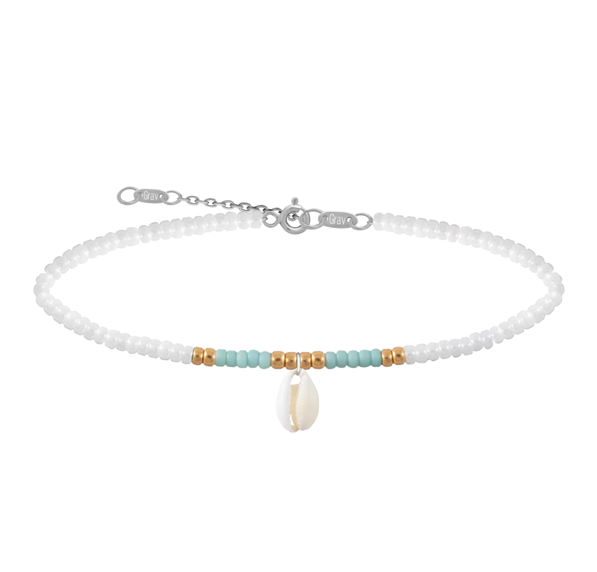 Fehér És Színes Gyöngy Ezüst 925 Bokalánc Kagyló Medállal