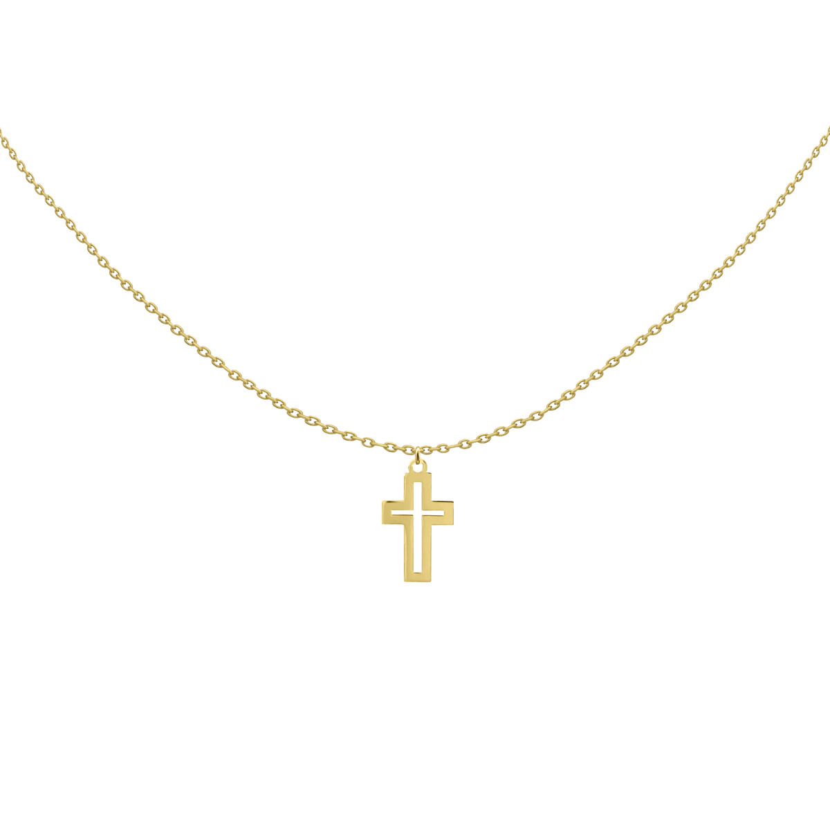Kontúr Kereszt Lógós Sárga Arany 14K Nyaklánc