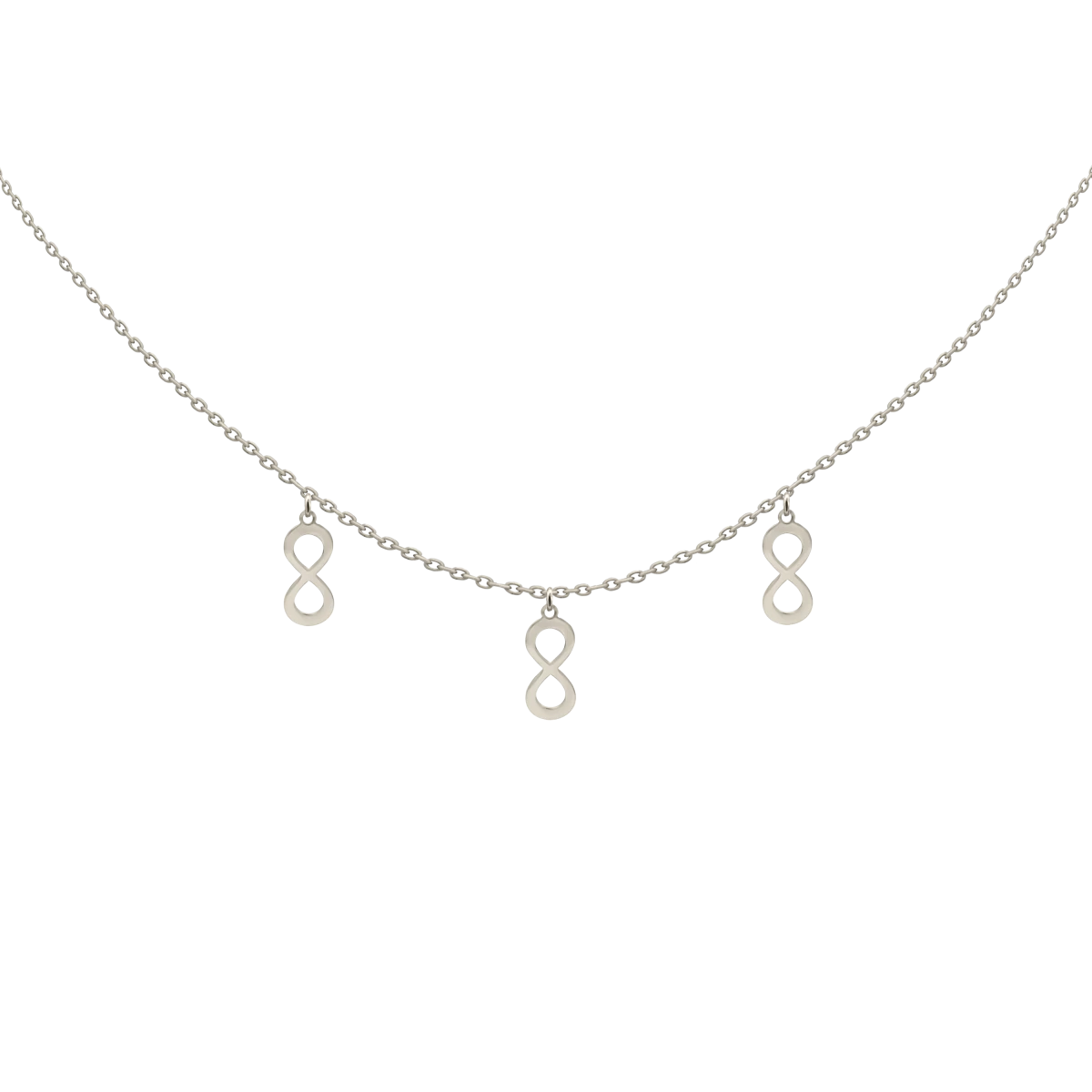 Háromszoros elegancia, végtelen jelentéssel! Emeld ki stílusodat ezzel a különleges nyaklánccal, amelyet három lógós, végtelen formájú charm díszít. A végtelen szimbólum nemcsak modern és trendi, hanem mély jelentéssel is bír: az örök szerelem, a végtelen lehetőségek és a határtalan erő jelképe. Ez a finom, elegáns ékszer tökéletes választás azoknak a fiatalos, divatkedvelő nőknek, akik szeretik, ha kiegészítőjük nemcsak stílusos, hanem üzenetet is hordoz. A három charm harmóniája kiemeli a nyaklánc egyediségét, így minden szettedhez különleges ragyogást ad.