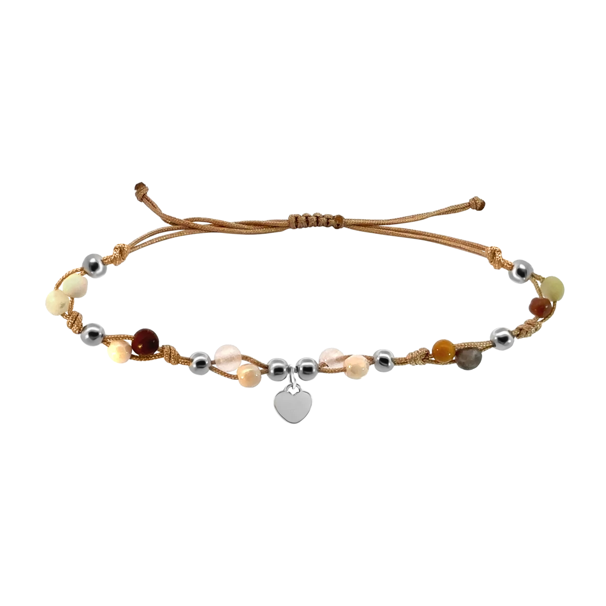 • Fazon: Makramé Színes Ásvány Lógós Szív Ezüst 925 Bokalánc