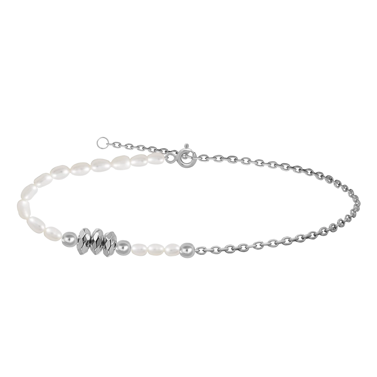 Fehér Édesvízi Gyöngy Lánccal Hematittal 925 Bokalánc