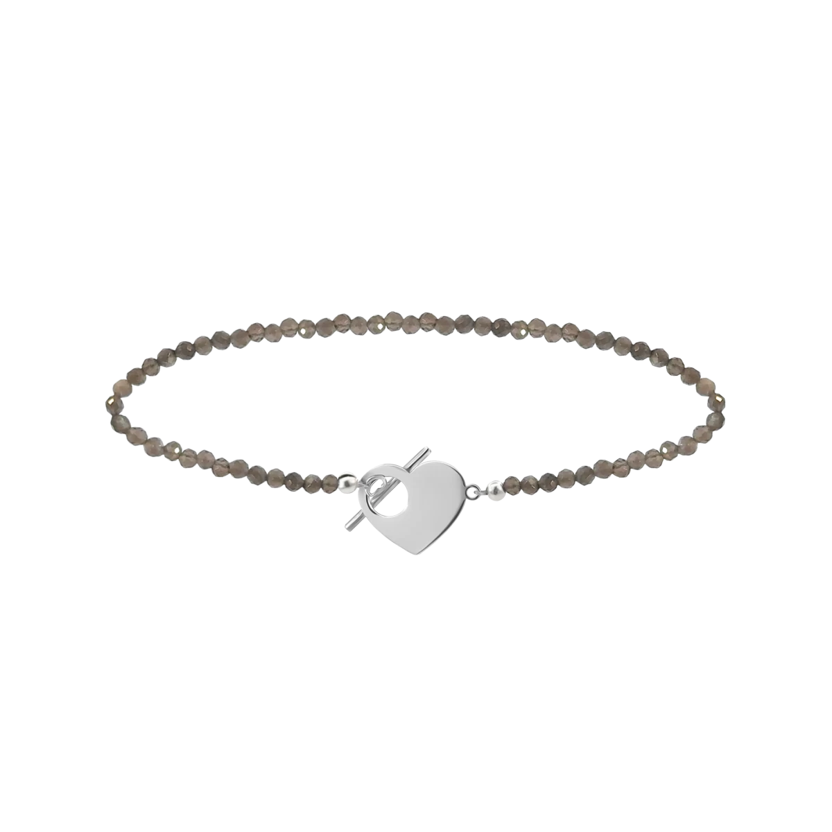 Szív Zár Füstkvarc Ásvány Ezüst 925 Karkötő