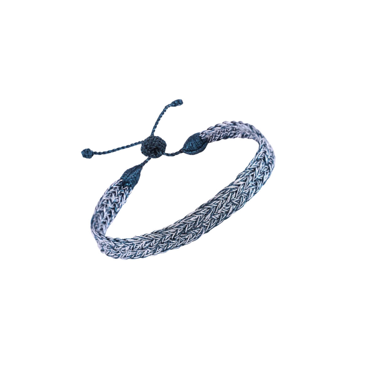 Ezt a merész és kifinomult, kézzel szőtt férfi karkötőt a Földközi-tenger mélykék árnyalatai és a marokkói kézművesség időtlen eleganciája ihlette. A karkötő különlegességét a hagyományos Sfifa szövés adja, amelyet ezüst és sötétkék szálak kombinációja tesz igazán egyedivé. A színek közötti kontraszt erőt, magabiztosságot és modern stílust sugároz. Ez a darab a tradíció és a modern férfidivat tökéletes ötvözete.